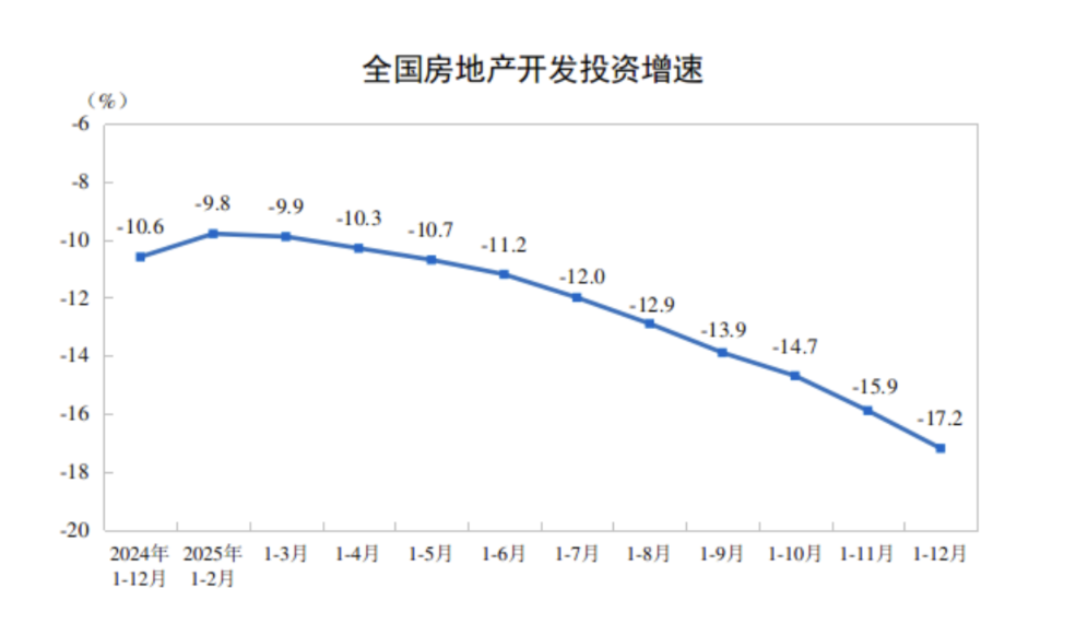 国家统计局数据显示,2025年,全国房地产开发投资82788亿元,同比下降17.2%(按可比口径计算);其中,住宅投资63514亿元,同比下降16.3%。